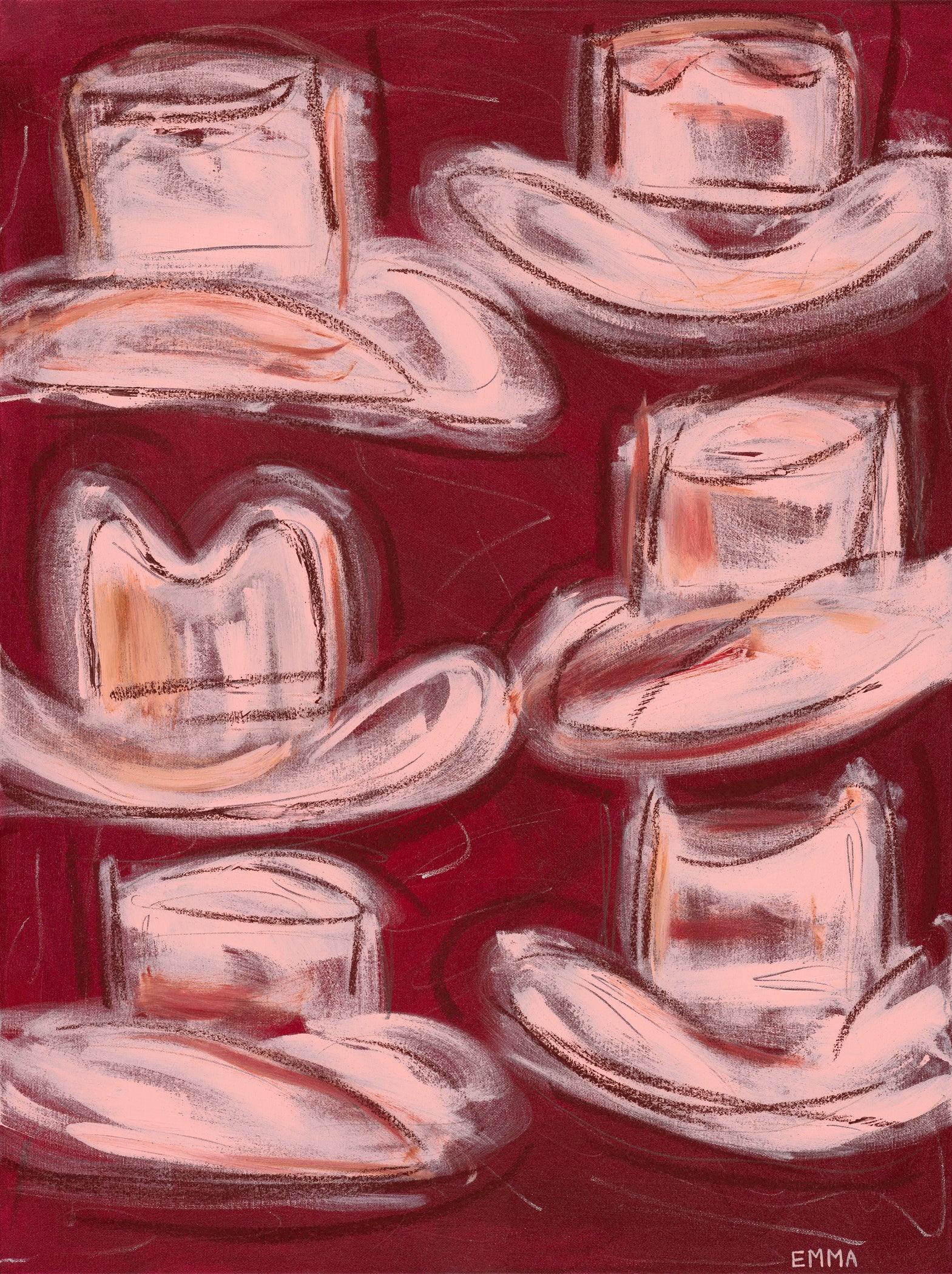 "Pink Cowboy Hats" print 24x32" canvas painting